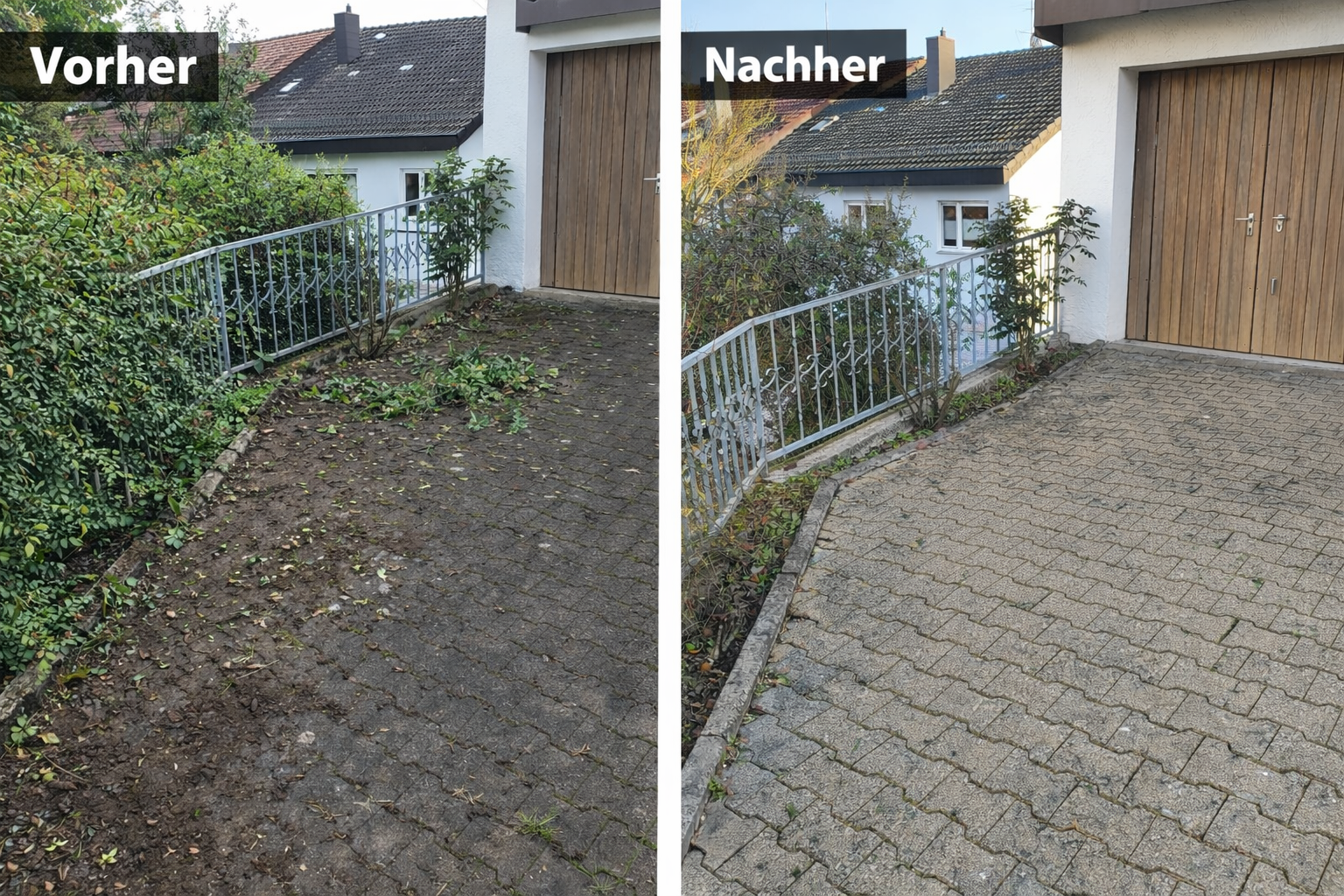 Wege, Terrassen, Einfahrten oder Mauern – wir entfernen Ablagerungen wie Moose und Flechten, Algen und Grünbelag, Erd- und Lehmreste, organische Verfärbungen durch Laub und Pflanzenreste sowie andere hartnäckige Verschmutzungen gründlich.